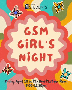 We’ll meet from 6:30-8:00 pm in the Student Center! It’s going to be a great time. |
